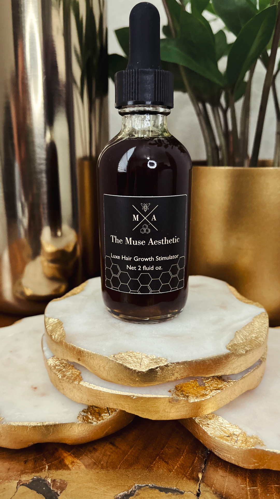 Aesthetic’s Luxe Hair Growth Stimulator premium blend oil is meticulously crafted from the finest organic ingredients proven to naturally nourish your scalp, promote vibrant hair growth, and seal your hair’s ends. Can also be used as both a beard growth treatment and a hot oil treatment.